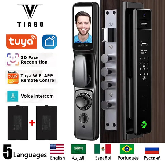 Tuya Wifi 3D Face Real-time Intercom Smart Door Lock Security Camera Intelligent Fingerprint Biometric Electronic Password lock