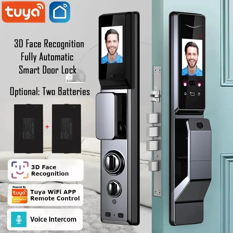Tuya Wifi 3D Face Real-time Intercom Smart Door Lock Security Camera Intelligent Fingerprint Biometric Electronic Password lock