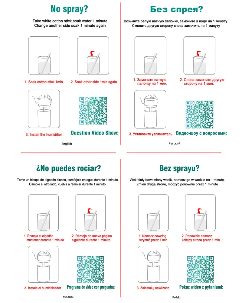 Before using the humidifier, please take out the cotton swab and soak it in water for 2-3 minutes, soak it completely and then plug it in.