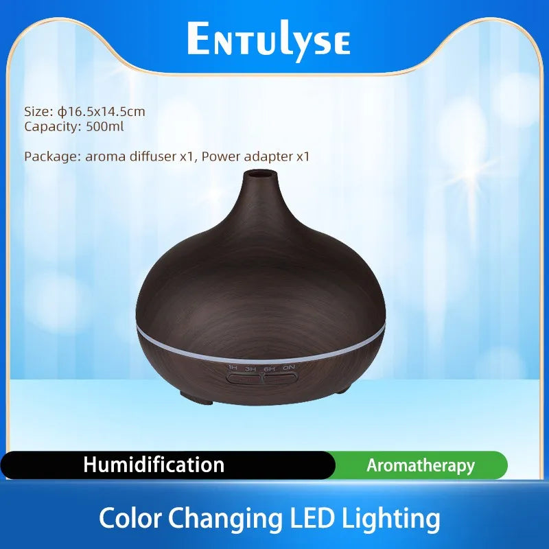500ml Air Humidifier Essential Oil Diffuser Aroma Lamp Aromatherapy Electric Aroma Diffuser Mist Maker for Home-Wood