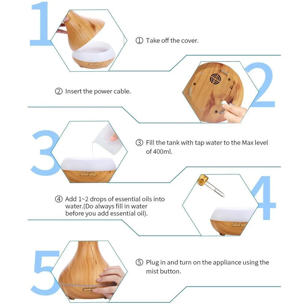500ML Air Humidifier Essential Oil Diffuser Aroma Ultrasonic Mist Maker Home Fragrance Aromatherapy Humificador for Home Office