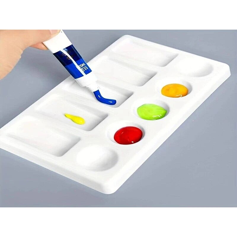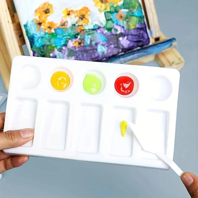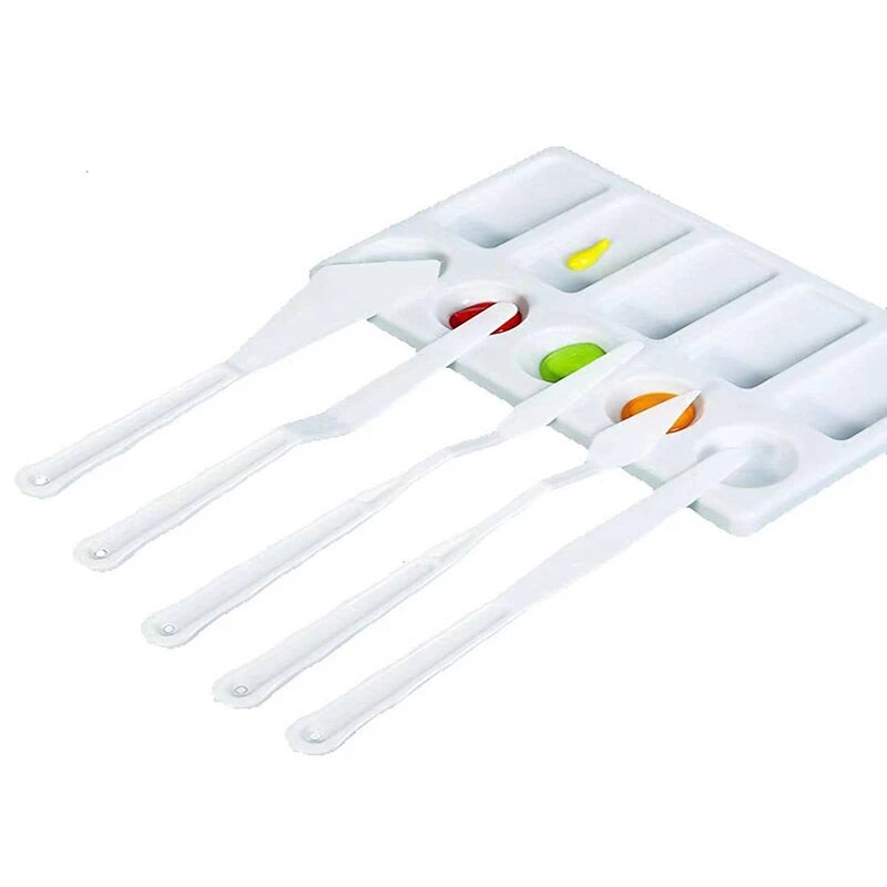 Bview Art 1Pcs 10 Holes Square Paint Tray Palette +5Pcs Palette Knifes Artist DIY Graffiti Oil White Plastic Paint Container Box