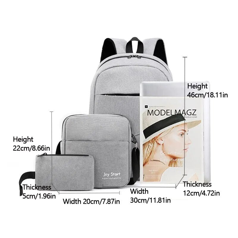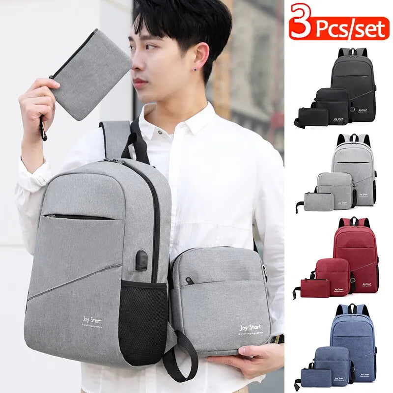 3 Pcs Set of SimpleCasual Large Capacity Business Computer Bag USB Charging Travel Bag Outdoor Travel Backpack