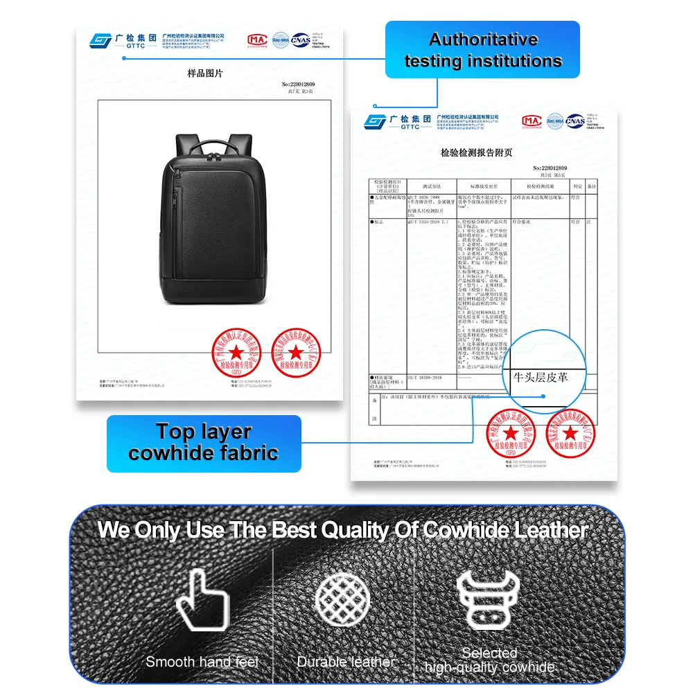 EURCOOL 2023 New Luxury Genuine Leather Backpack for Men Travel Black Bagpack Top Layer Cow Leather Men Business Laptop Mochila