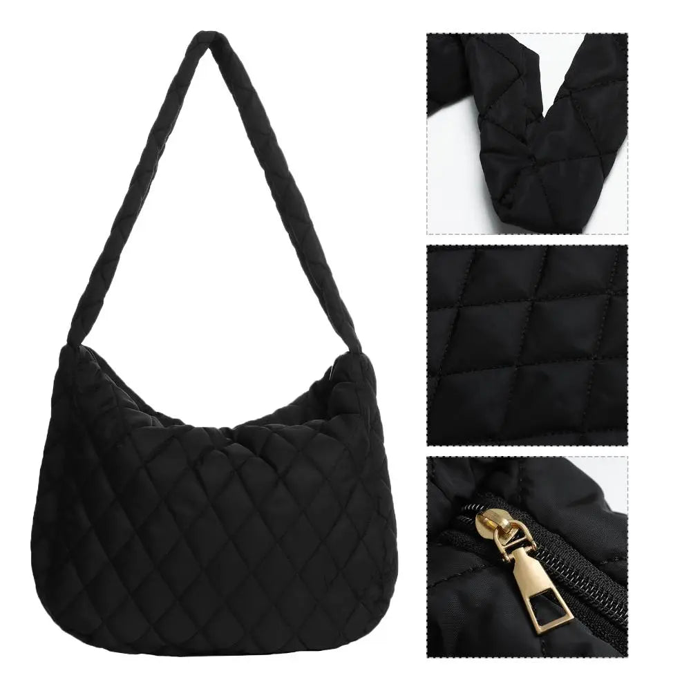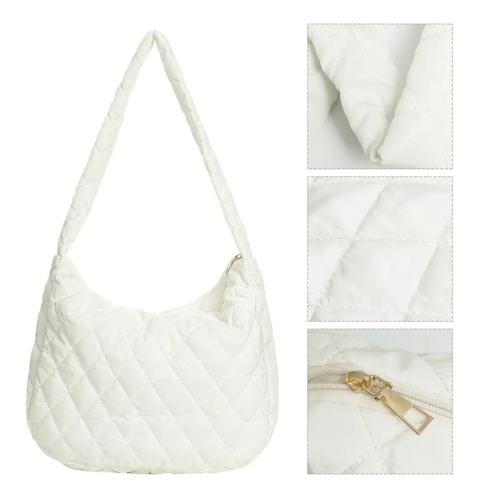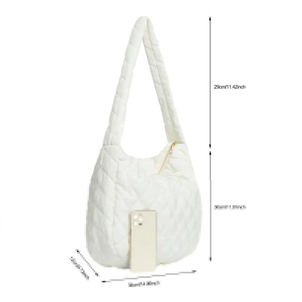 Large Capacity Quilted Tote Bag Lightweight Winter Warm Down Cotton Padded Plaid Shoulder Bags Women Underarm Bags Puffy Handbag