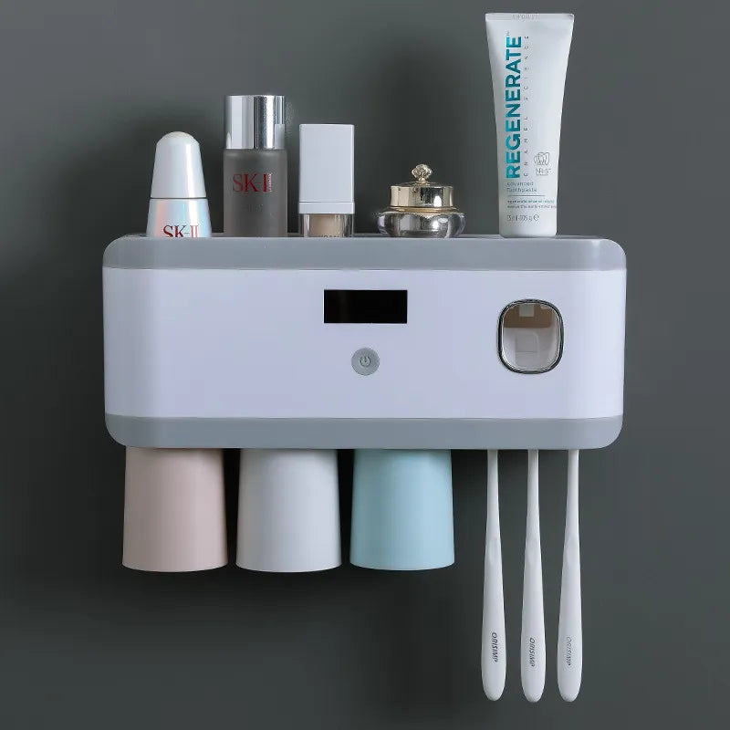 Bathroom UV Toothbrush Holder Set Toothbrush Sterilizer Toothpaste Dispenser Squeezer Storage Rack with Cup Bathroom Accessories