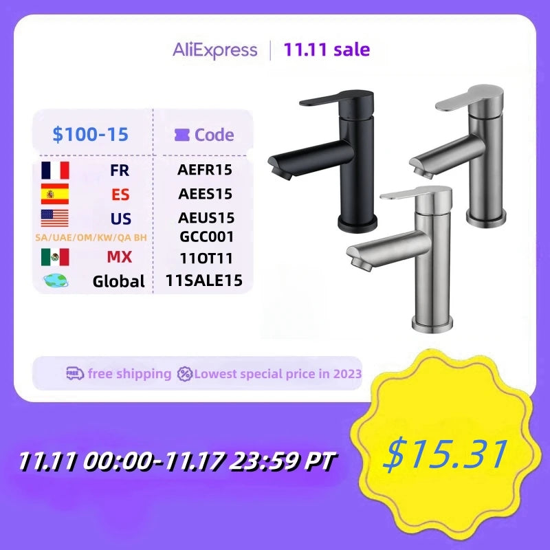 Bathroom Faucet 304 Stainless Steel Hot and Cold Water Tap Washbasin Basin Faucets Bathroom Accessories Set Sink Bath Mixer