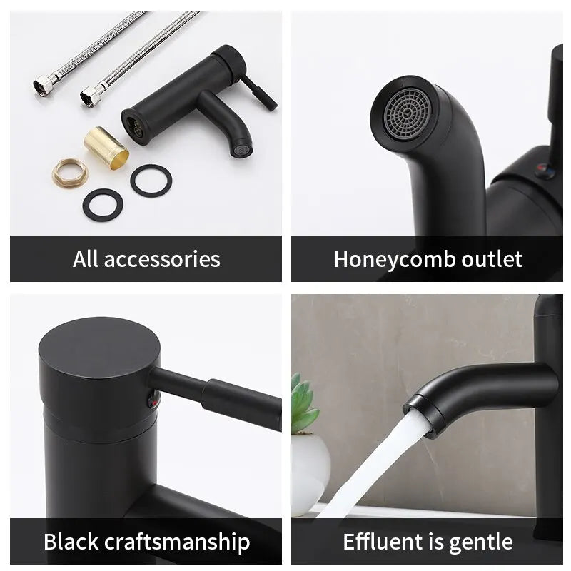 Black Minimalist Style Bathroom Faucet Hot Cold Water Sink Mixer Tap Stainless Steel Basin Faucets
