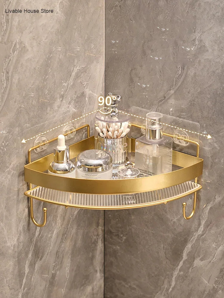Gold Bathroom Storage Rack non punching tripod Wall Mounted Storage holder Shampoo shower gel storage rack Bathroom Accessories