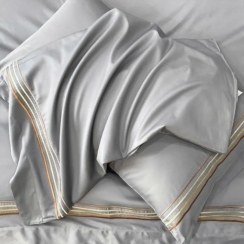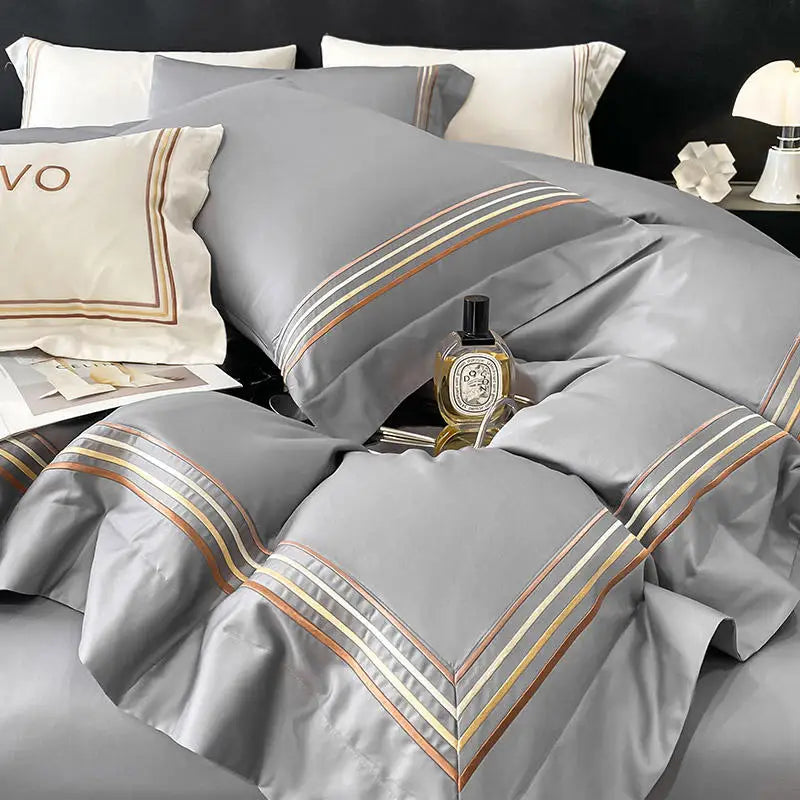 800TC Egyptian Cotton Hotel Bedding Set Luxury Stripe Embroidery Silver Grey Duvet Cover Flat Or Fitted Bed Sheet Pillowcases
