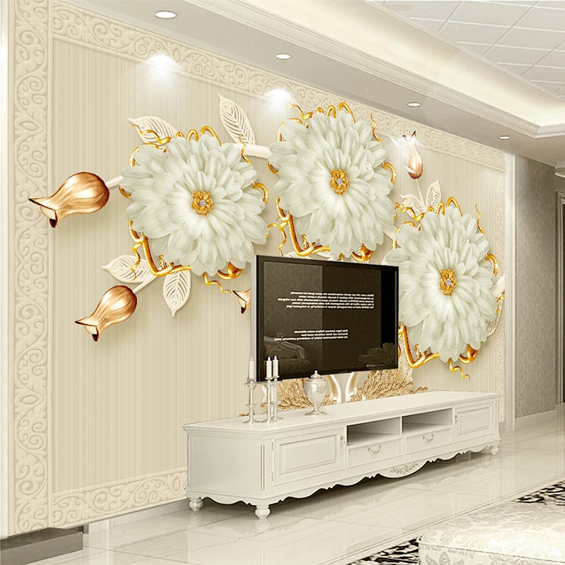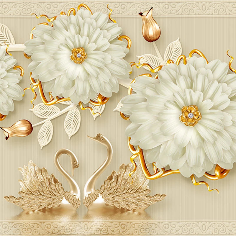 European Style Luxury 3D Jewelry Flowers Swan Mural Wallpaper Living Room TV Sofa Background Wall Covering Decor Papel De Parede