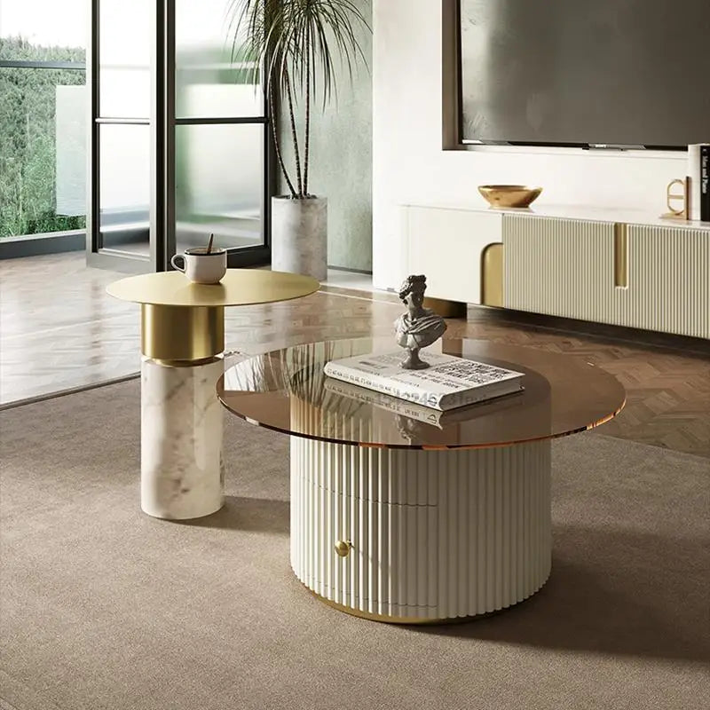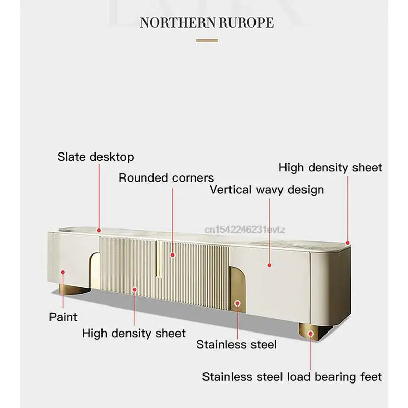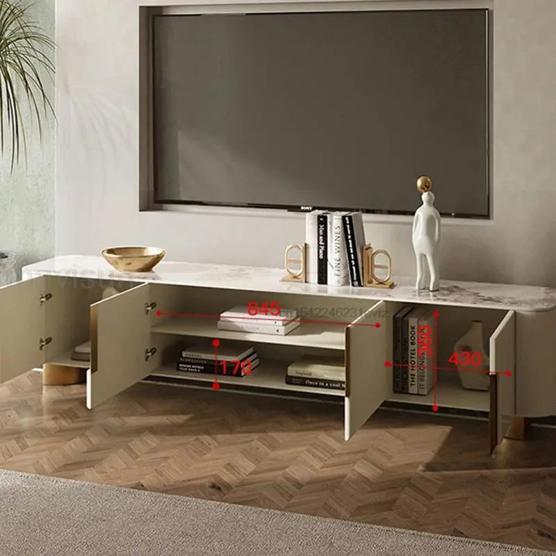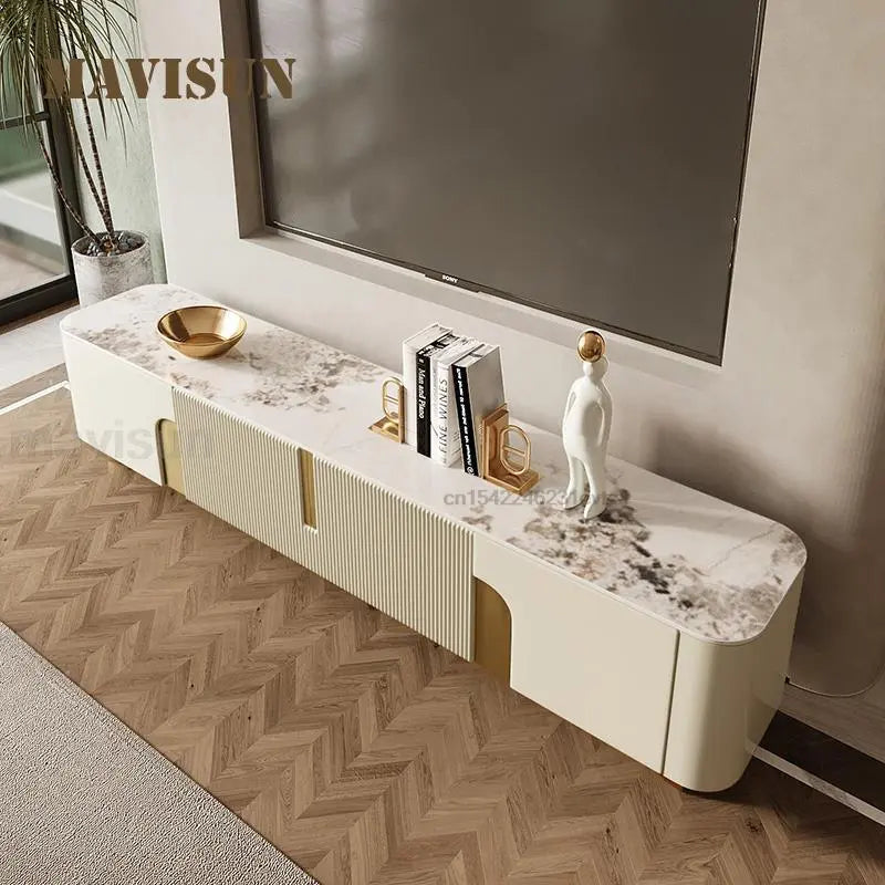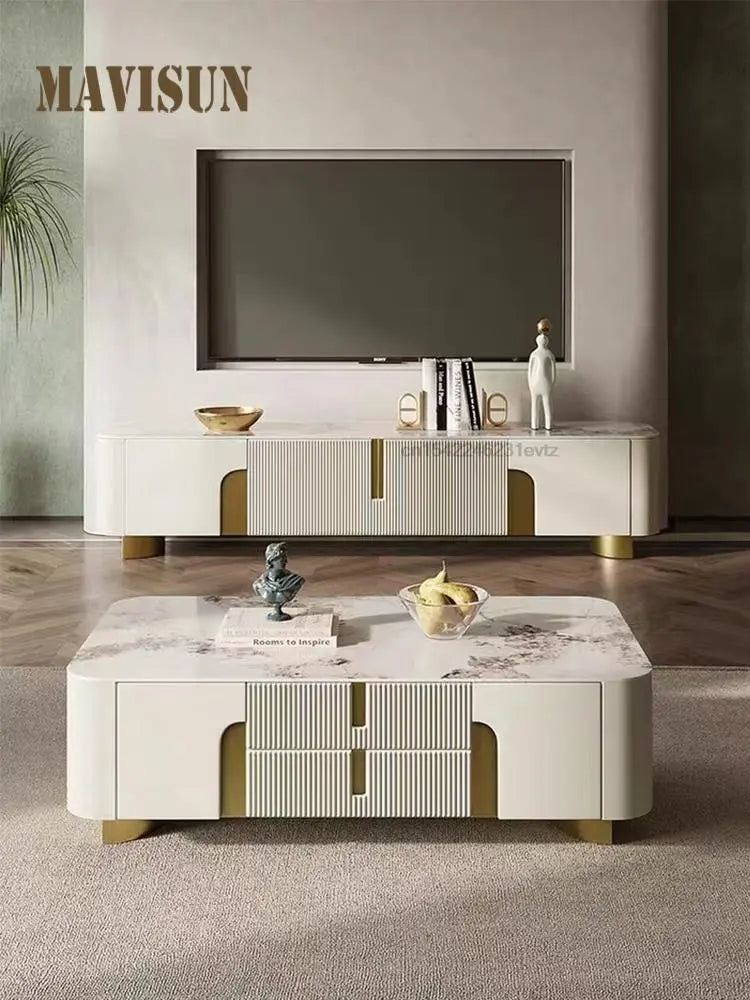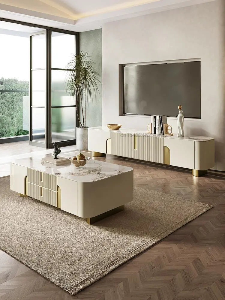 Light Luxury TV Cabinet Rectangle Center Tables White Display Sideboard With Drawers Round Corners Coffee Table For Living Room
