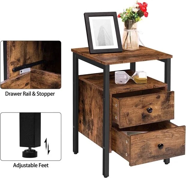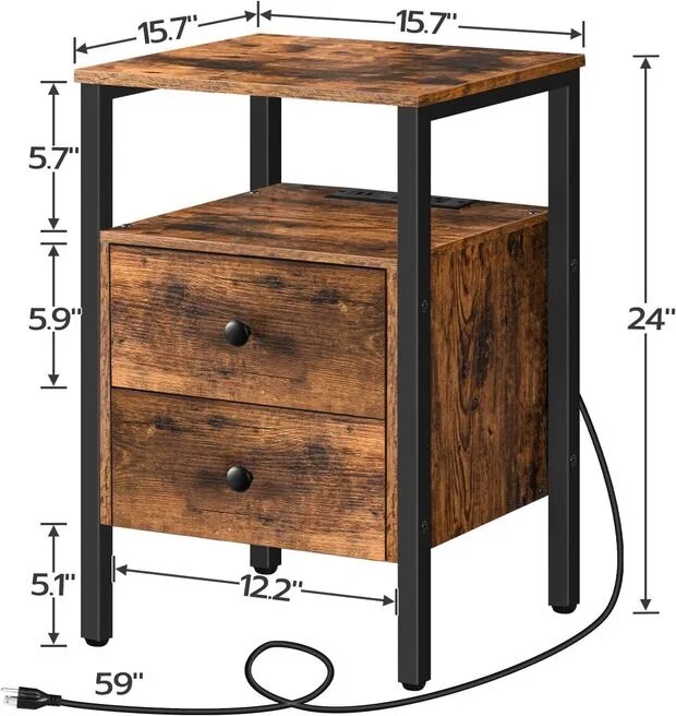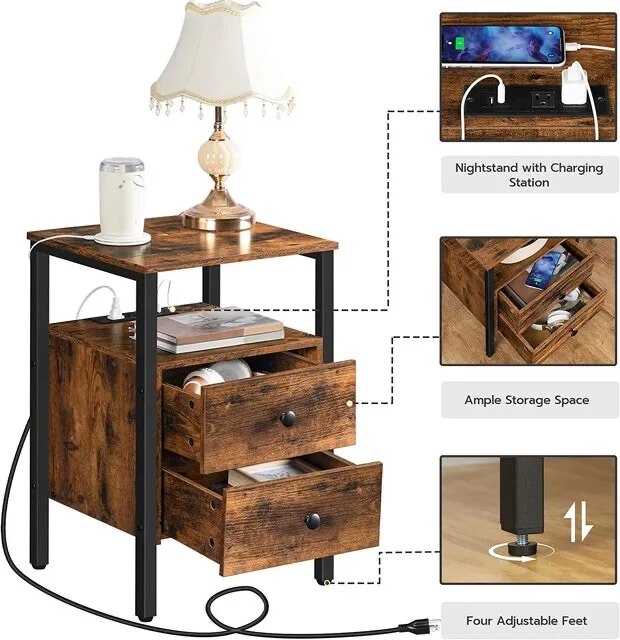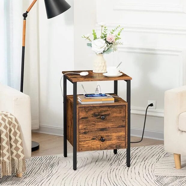 Retro Wooden Bedside Table With EU Socket Bedside Table Storage Cabinet Bedroom Bedside Table Home Decor Furniture Space Saving