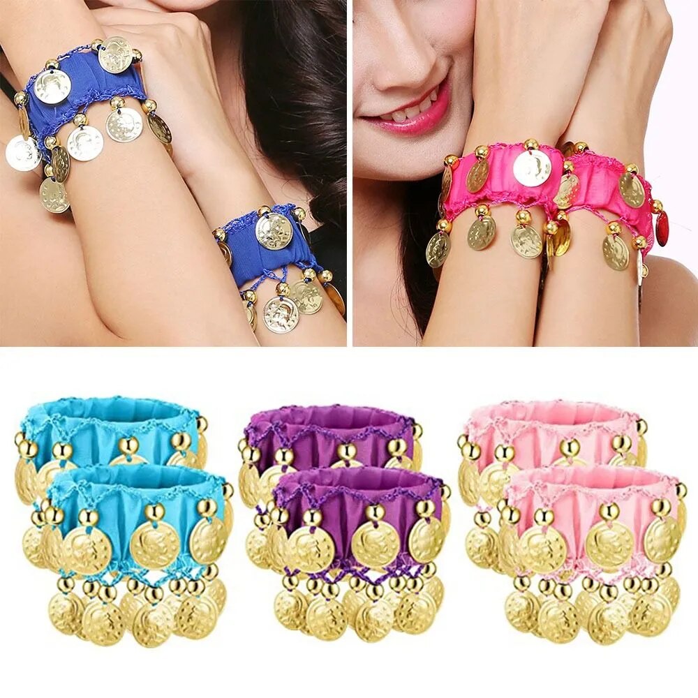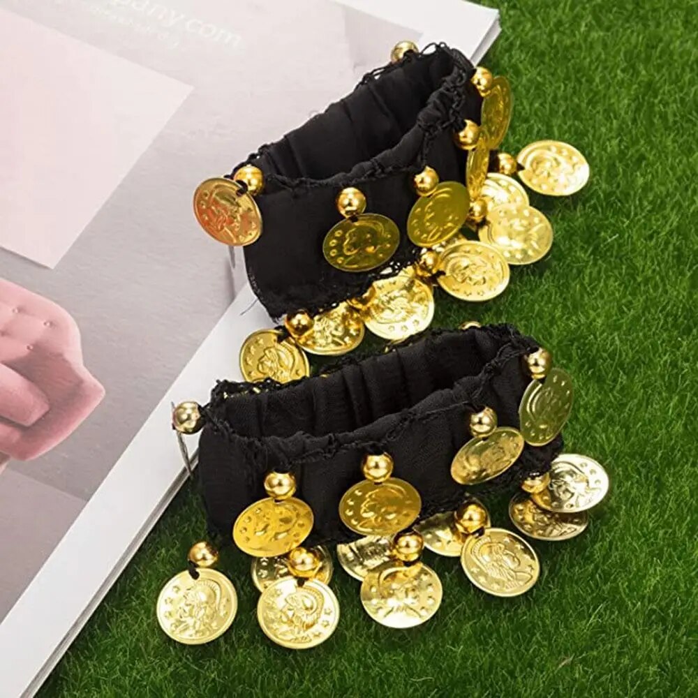 1 Pair Belly Dance Wrist Ankle Cuffs Bracelets Chiffon Gold Coin Belly Dance Costume Rattle Bracelet Belly Dance Accessories