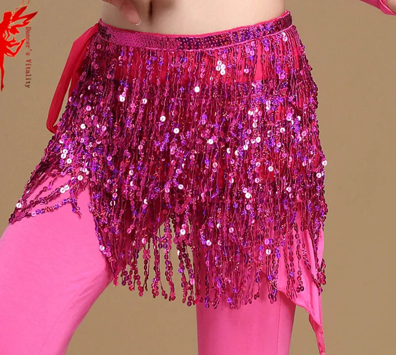12 colors belly dance accessories women belly dance hip scarf tassel sequins belt girls belly dance belt