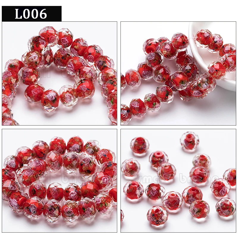 NAME:12mm Large Murano Transparent Glass Lampwork Beads for Jewelry Making Women Diy Bracelet Flower Rondelle Faceted Beads L002