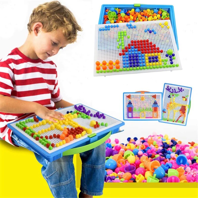 296/352/592pcs 3D Puzzle Game Puzzle Board Gift Creative Educational Toy DIY Handmade Toy Mushroom Nail Plastic Bead Creative To