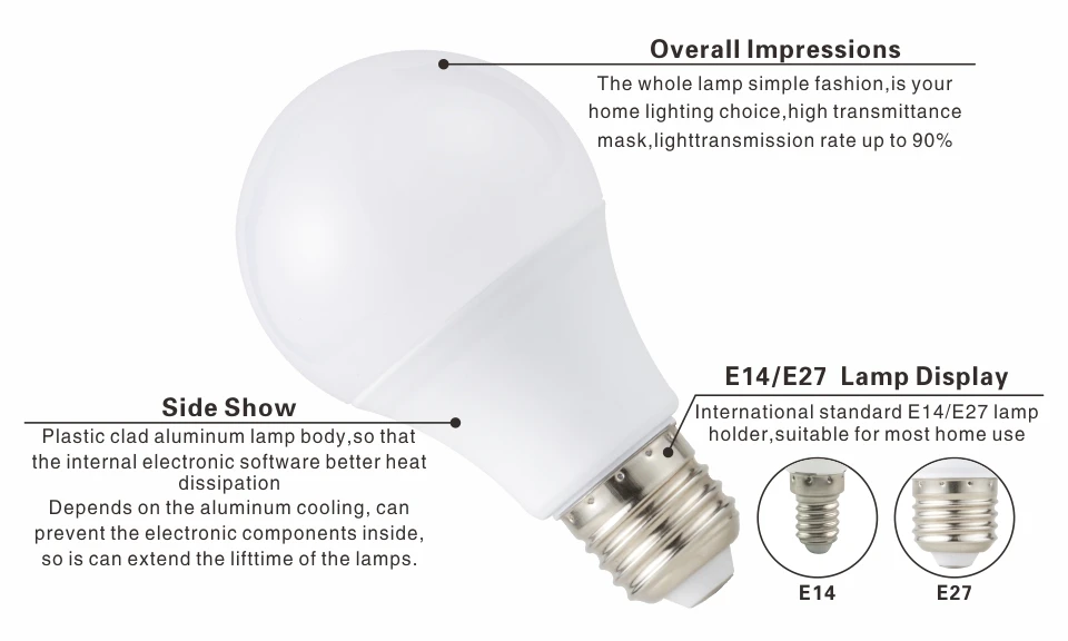 E27-3W/ 6W/ 7W/ 9W/ 12W/ 15W/ 18W/ 20W