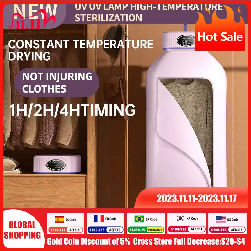 600W Folded Electric Clothes Dryer Smart Drying Rack Hang Dryer Machine Portable Travel Warm Air Dryer For Clothes With Timing