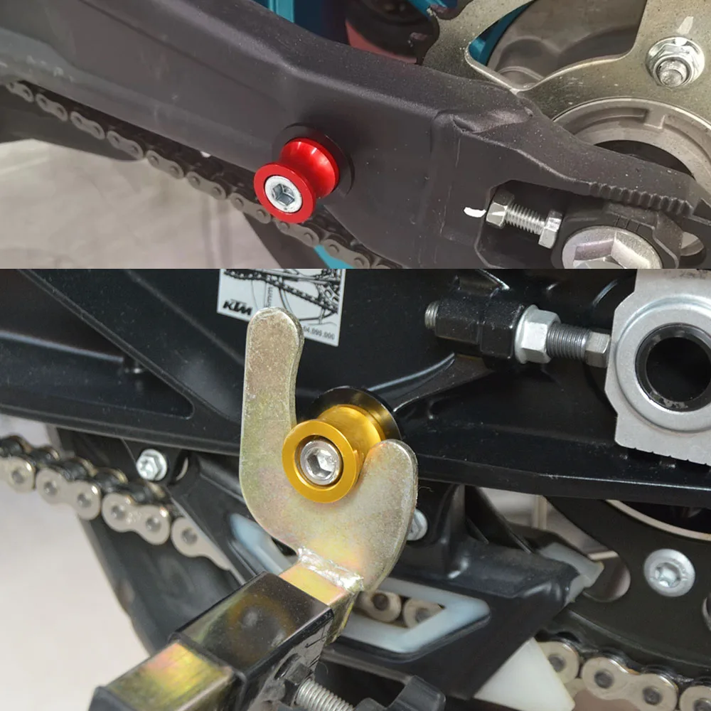 --Whether you're looking to protect your swingarm from an inevitable tip-over or you need to place your bike on a stand, these CNC machined spools/sliders/bobbins are your answer
