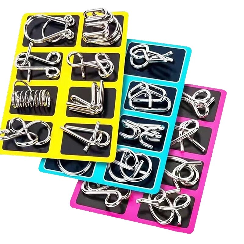 8pcs Children Puzzle Toy Intelligence Buckle Metal Brain Training Parent-child Interactive Games Unravel loop Release TMZ