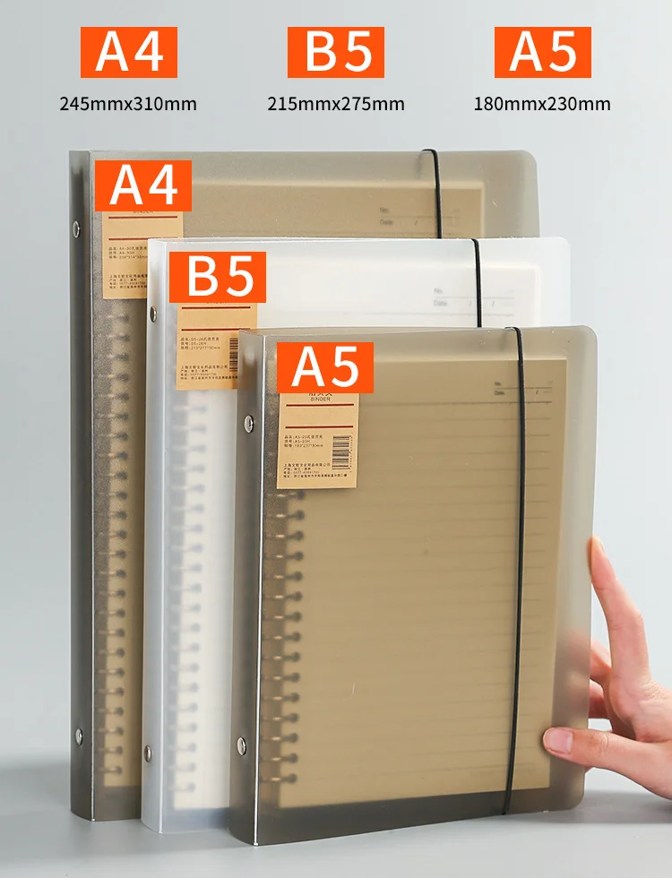 3. Product size: A4: 24.5 x 31 cm, A5: 18 x 23 cm,B5:21.5 x 27.5 cm