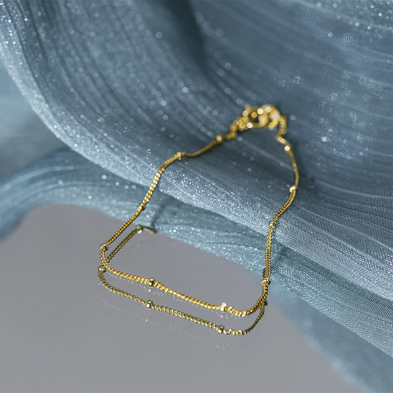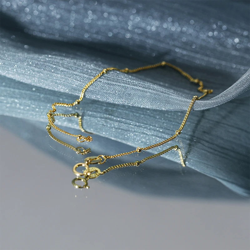 Aide 925 Sterling Silver Minimalist Small Beads Thin Chain Bracelets For Women Rose Red Gold Bracelet Party Jewelry Accessories