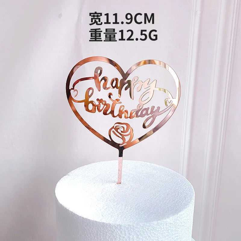 Happy birthday cake topper Baking cake Insert Decorating Supplies Acrylic topper cupcak Flag Birthday Party decoration