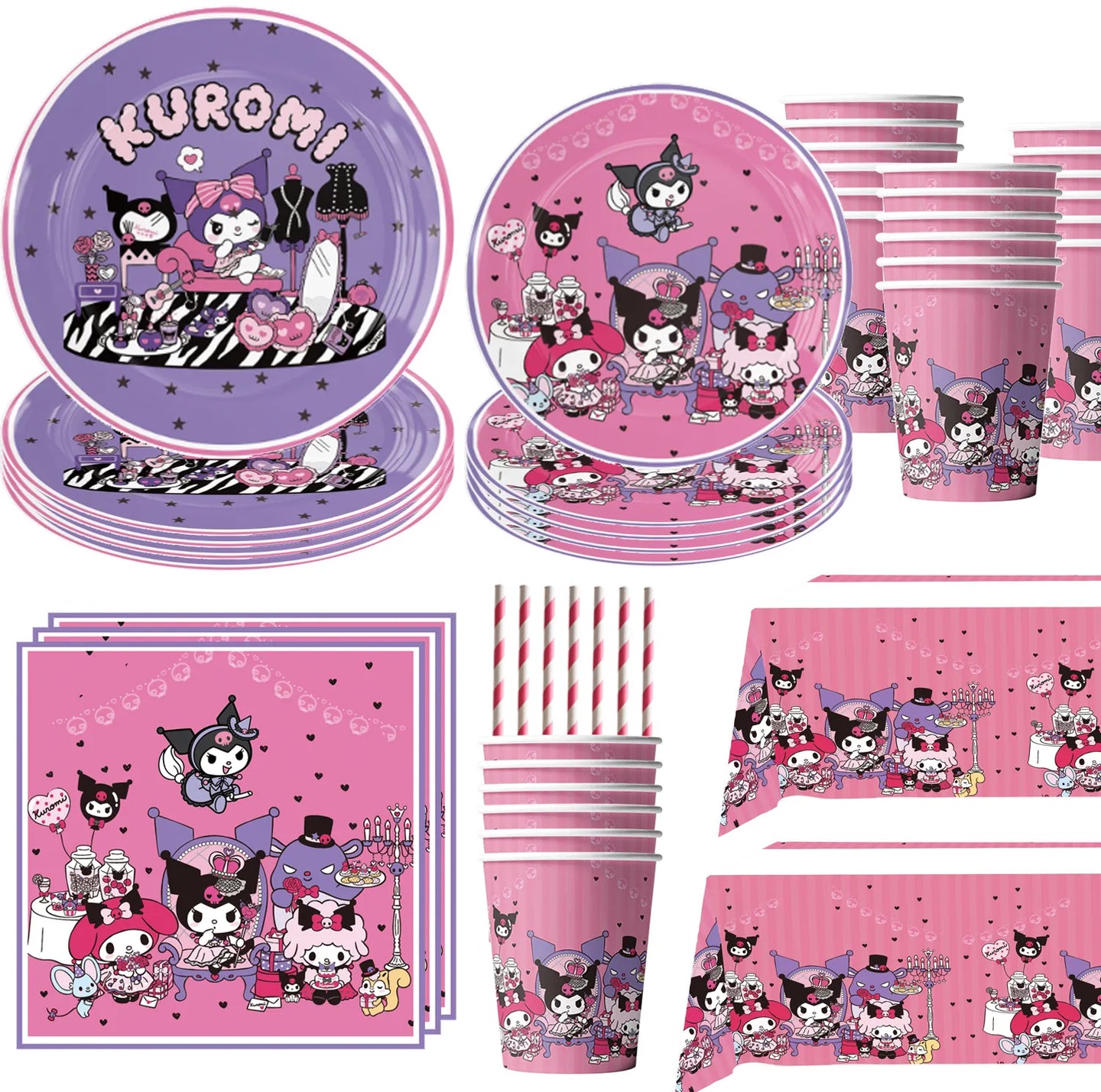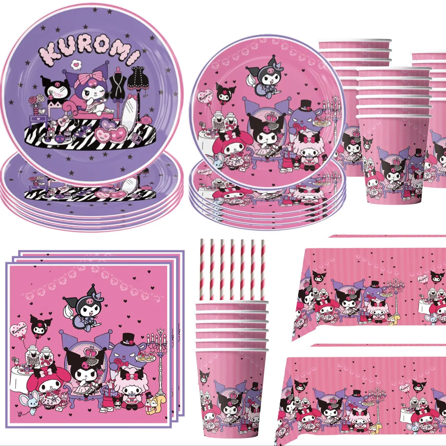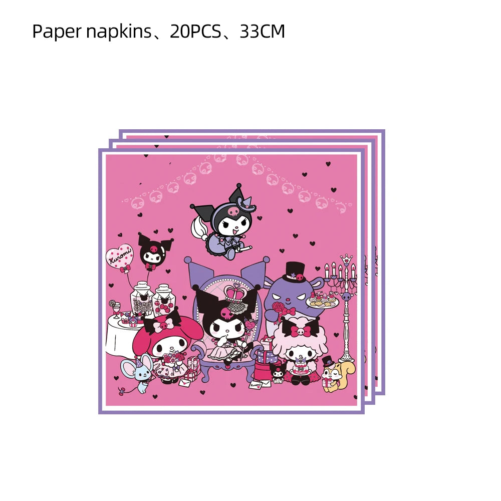 Cute Kawali Kuromied Theme Birthday Party Decoration Disposable Set Tableware Plate Napkins Tablecloth For Kid Shower Supplies