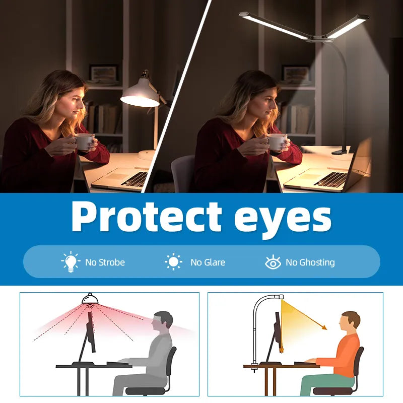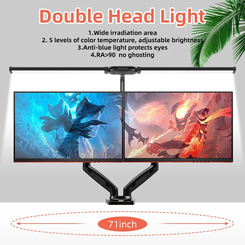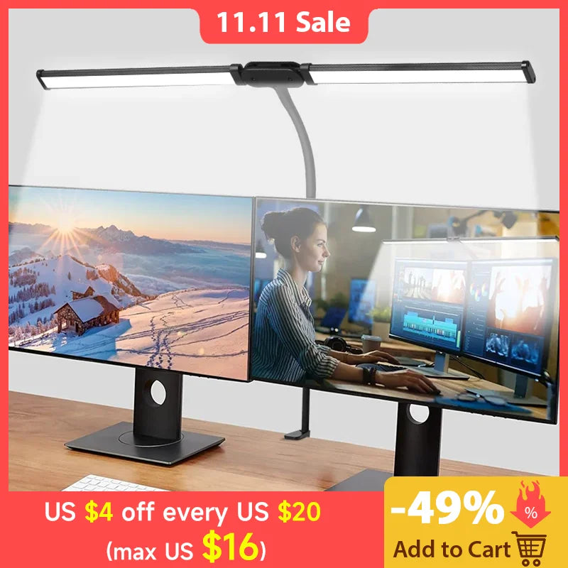 Double Head Led Desk Lamp Anti-Bule Light Table Light Monitor Light Setpless Dimmable USB Desk Lighting For Office Study reading