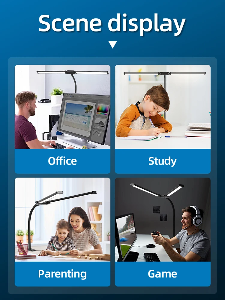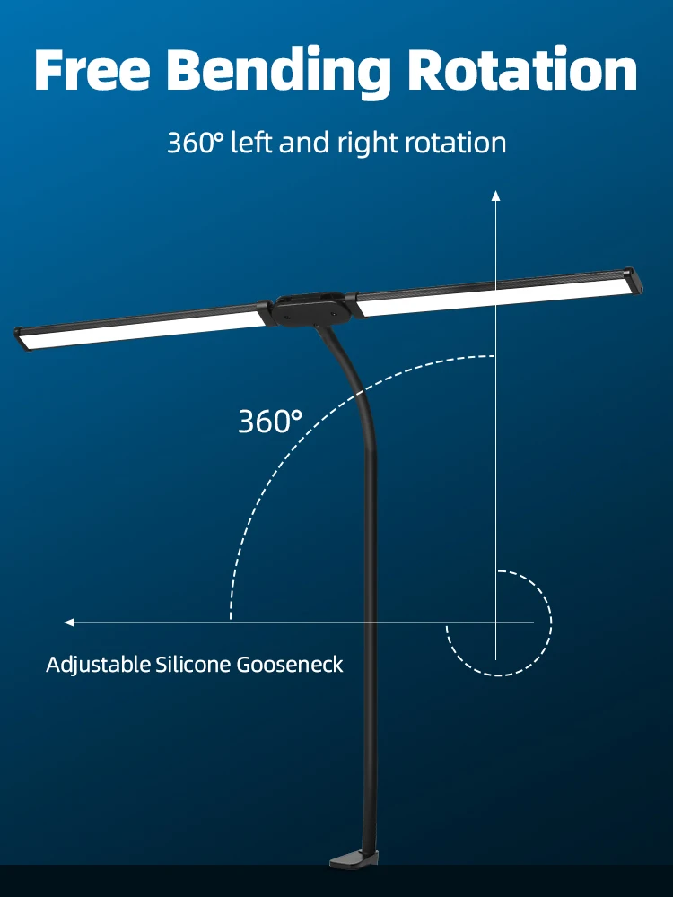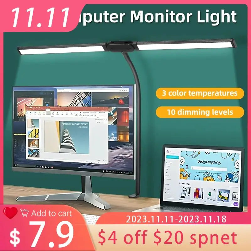 Double Head LED Desk Lamp Stepless Dimmable Computer Monitor Lights USB Foldable Table Lamp for Office Reading Lighting Fixture
