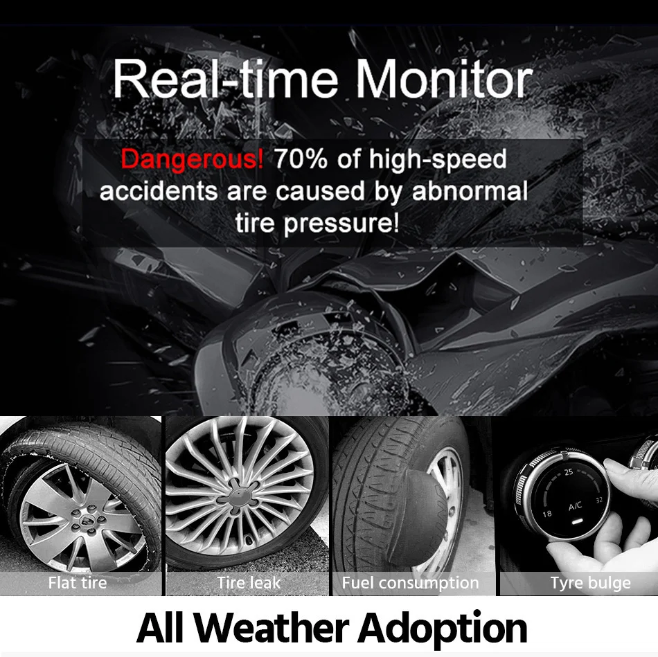 ✔Rear-time monitoring pressure & temperature of 4 tires