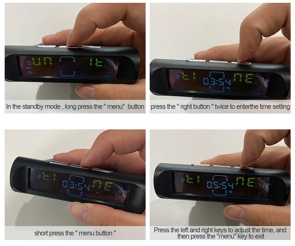 ➤4. Press the left and right keys to adjust the time and then press the "menu" key to exit