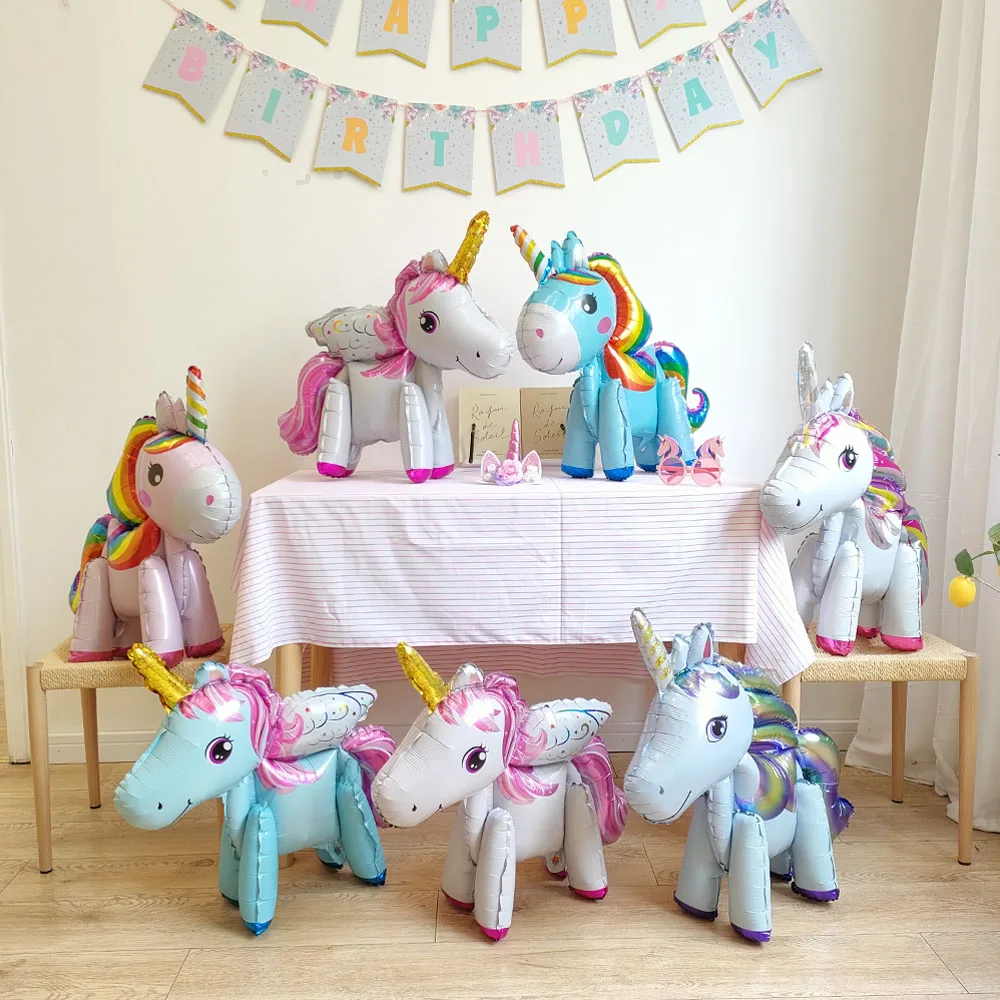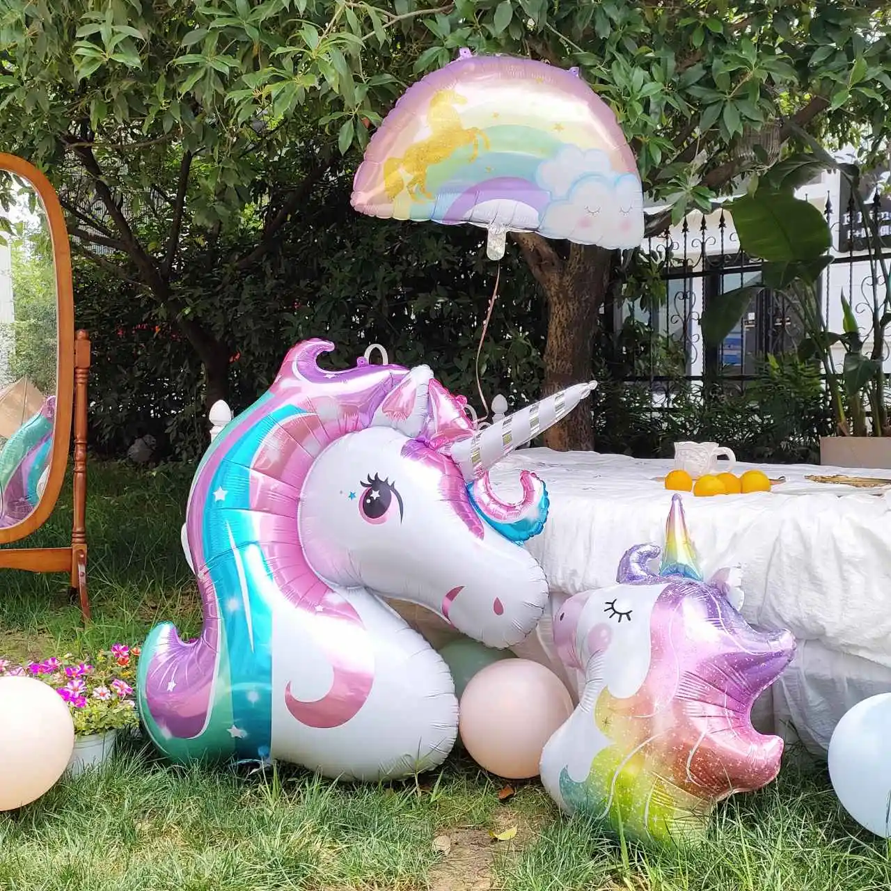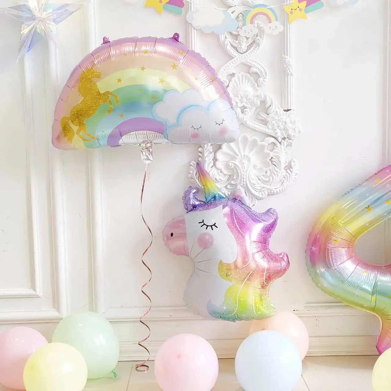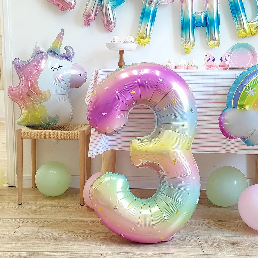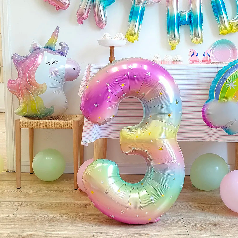 Large Rainbow Unicorn Helium Balloons 40inch Number Foil Balloons Unicorn Theme Birthday Girl Boy Party Decoration Baby Shower