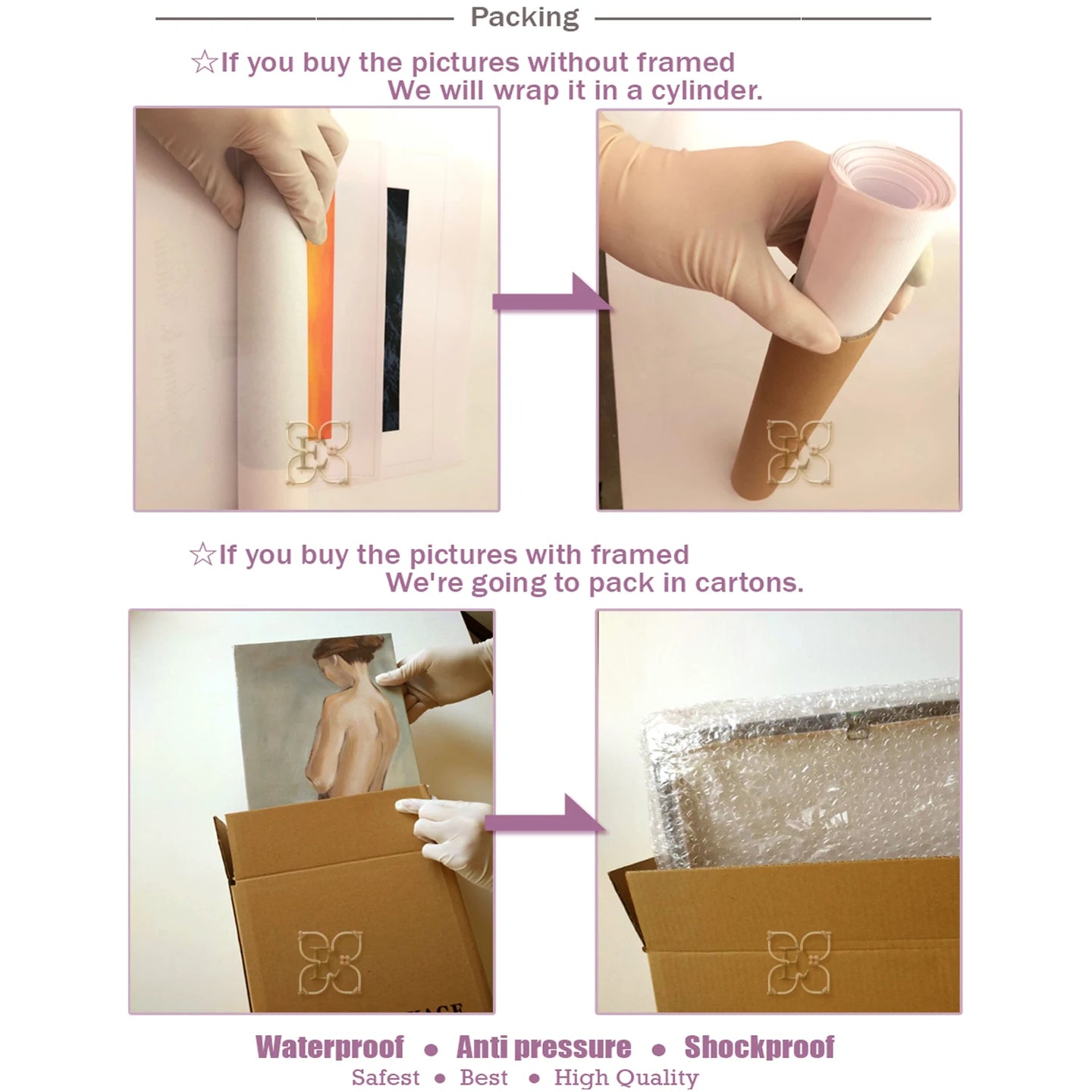 3. No Framed Canvas Prints - They are just the prints on canvas without a wooden frame. These are securely delivered rolled in a shipping tube as the picture below.