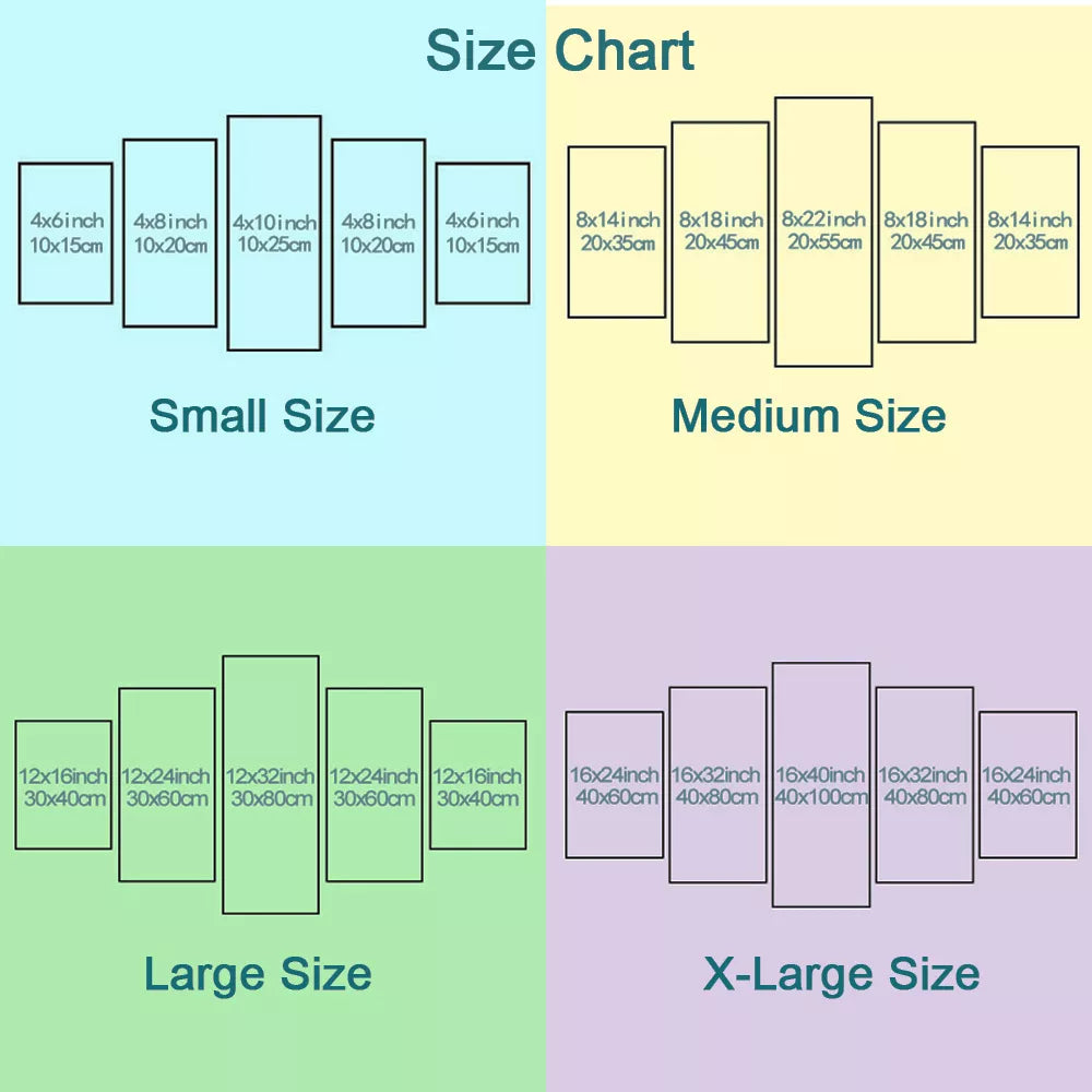 9. We provide custom print service, we can help you to split picture to fit 5 panels, 3 or 4 panels and at any size you want.