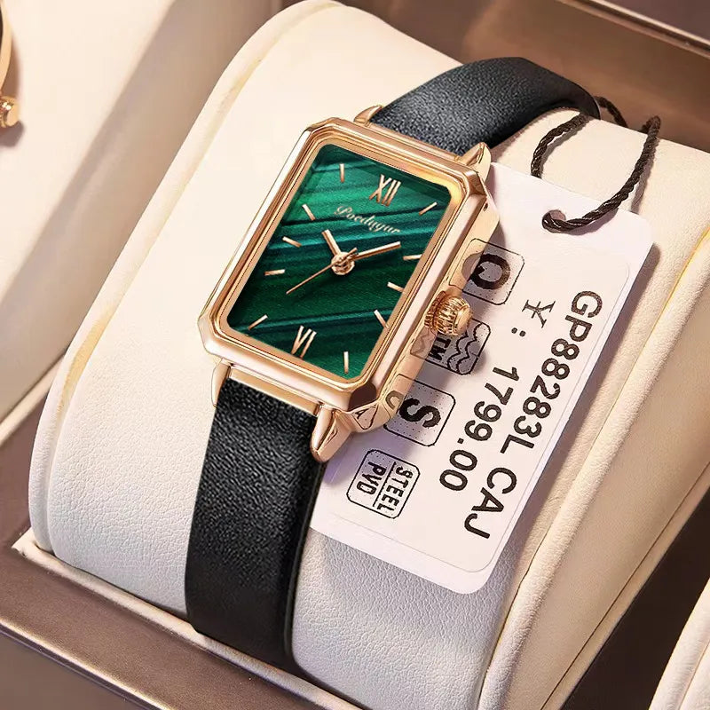 POEDAGAR Women Watches Fashion Green Square Leather Quartz Watch Top Brand Luxury Waterproof Ladies Wristwatch Girlfriend Gift