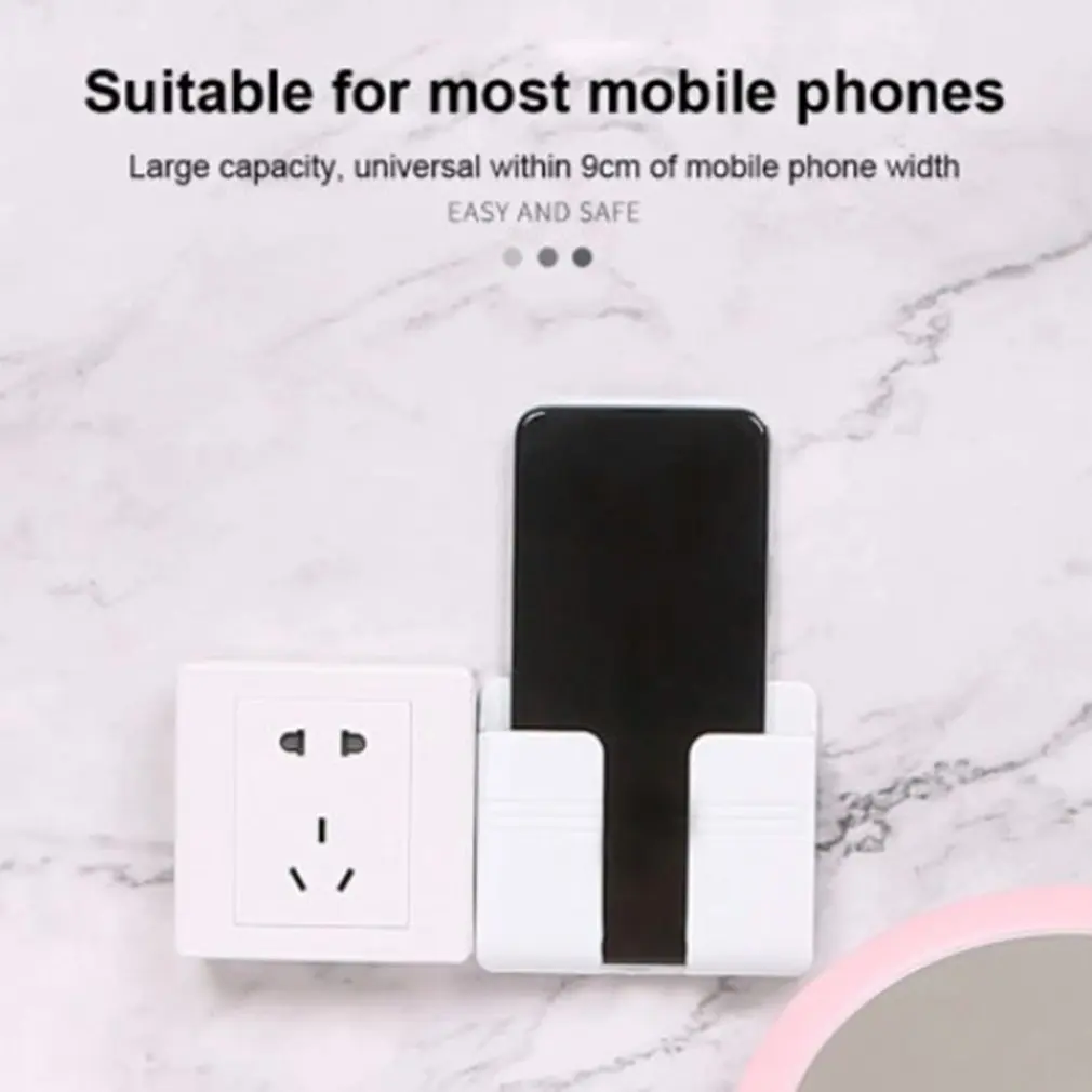 Practical Wall Mount Phone Holder Socket Phone Charging Holder Bracket Shelf Wall Mounted Home Office Organizer Storage Box