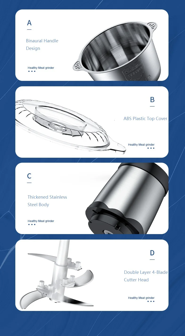 5-10S Fast Chopper: The 300W electric food processor with higher efficiency, different from other false power chopper. Equipped with durable 4 blades, can quickly grind food within 5-10 seconds, suitable for Meat, Vegetable, Onion, Garlic, Salad, Baby Food and so on.
