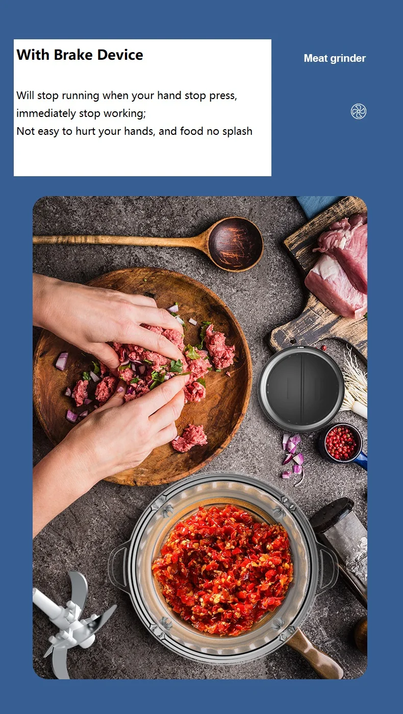 Safety Performance: Our food processors equipped with overheating protection system, it will automatically stop working at high temperature, the blade will not spin when the machine body is not lock in the place, which ensures safe use and anti-splash.