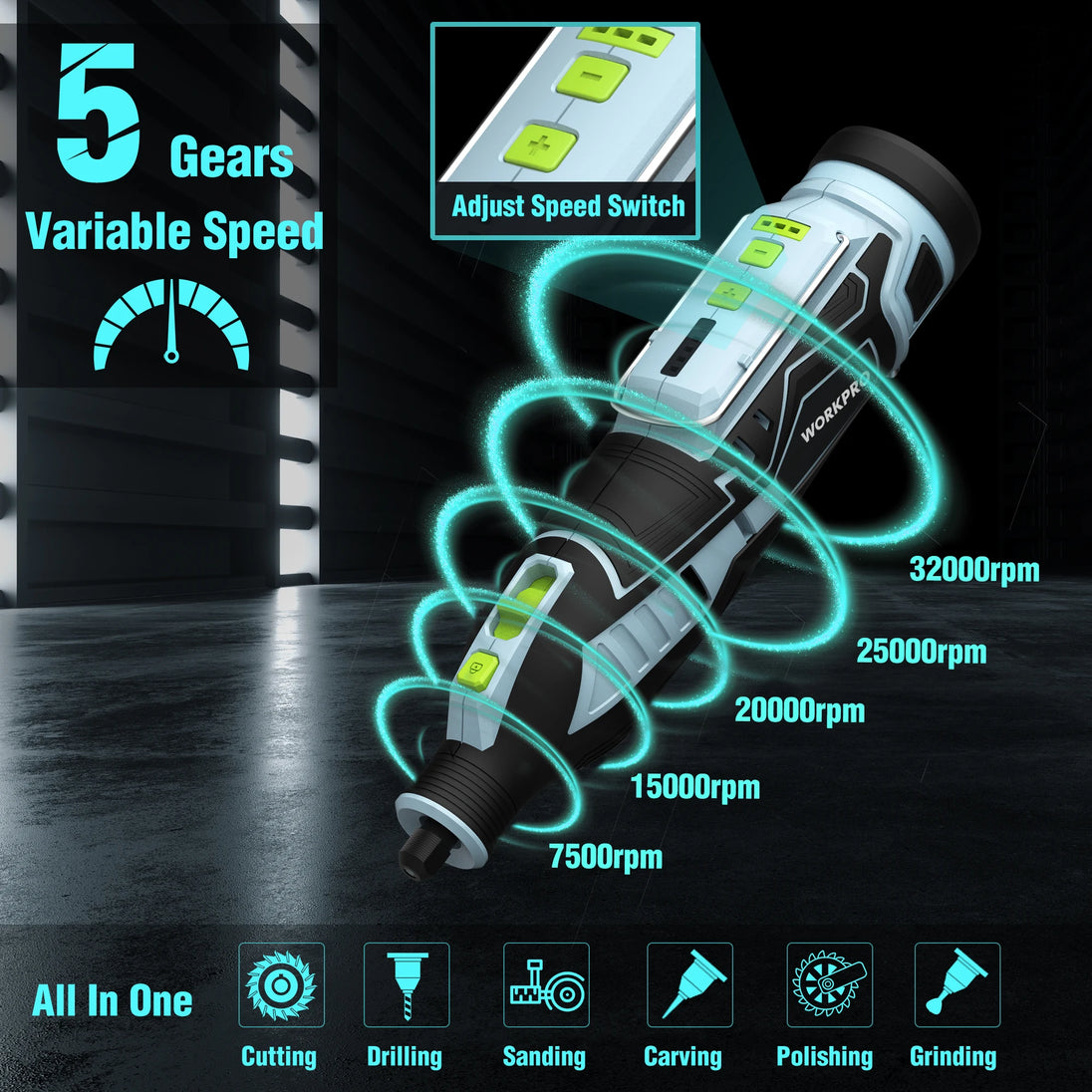WORKPRO 12V Li-lon Cordless Rotary Tool(VDE Plug)