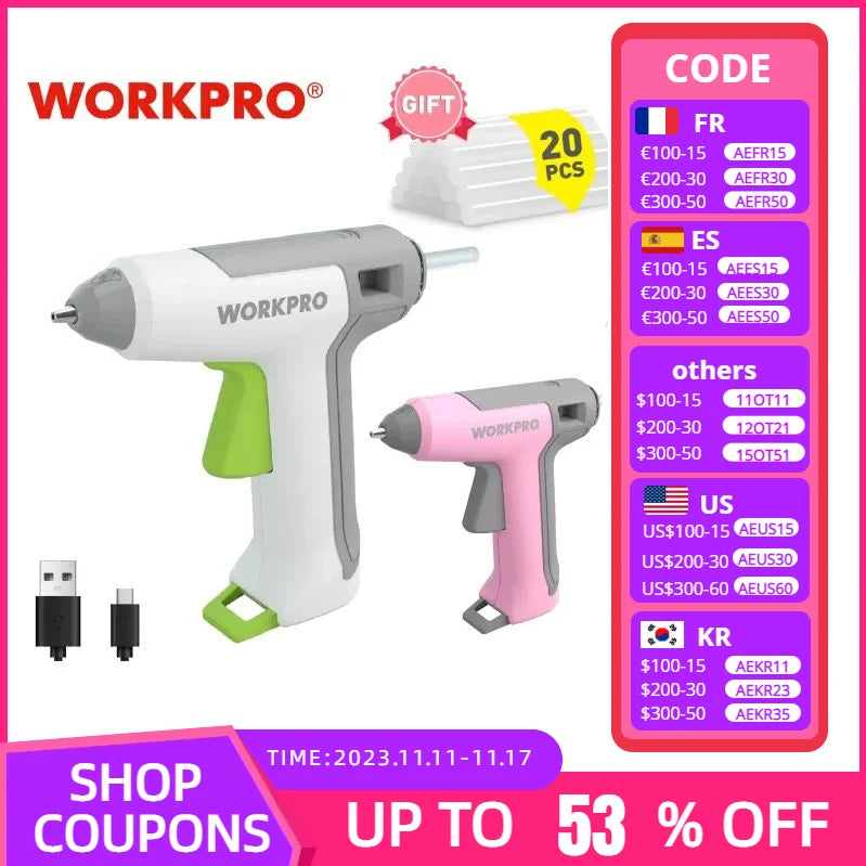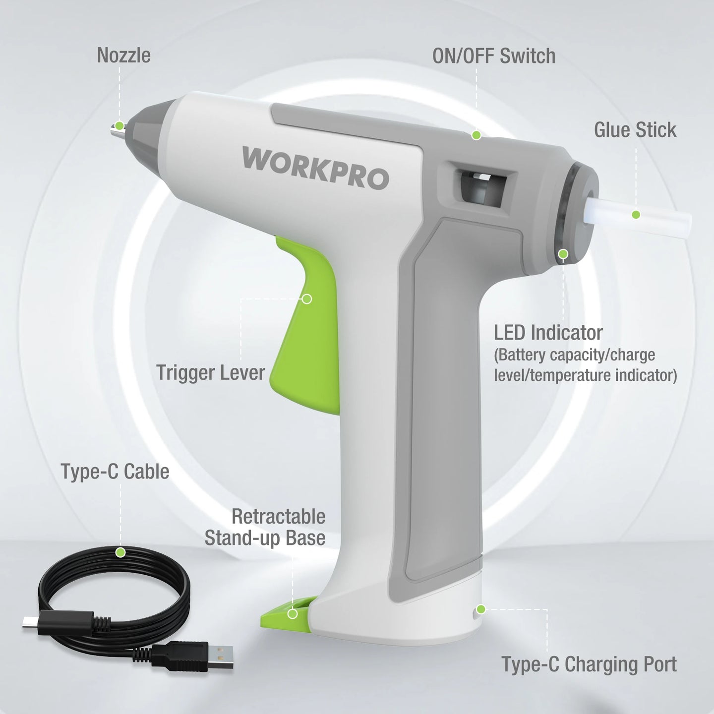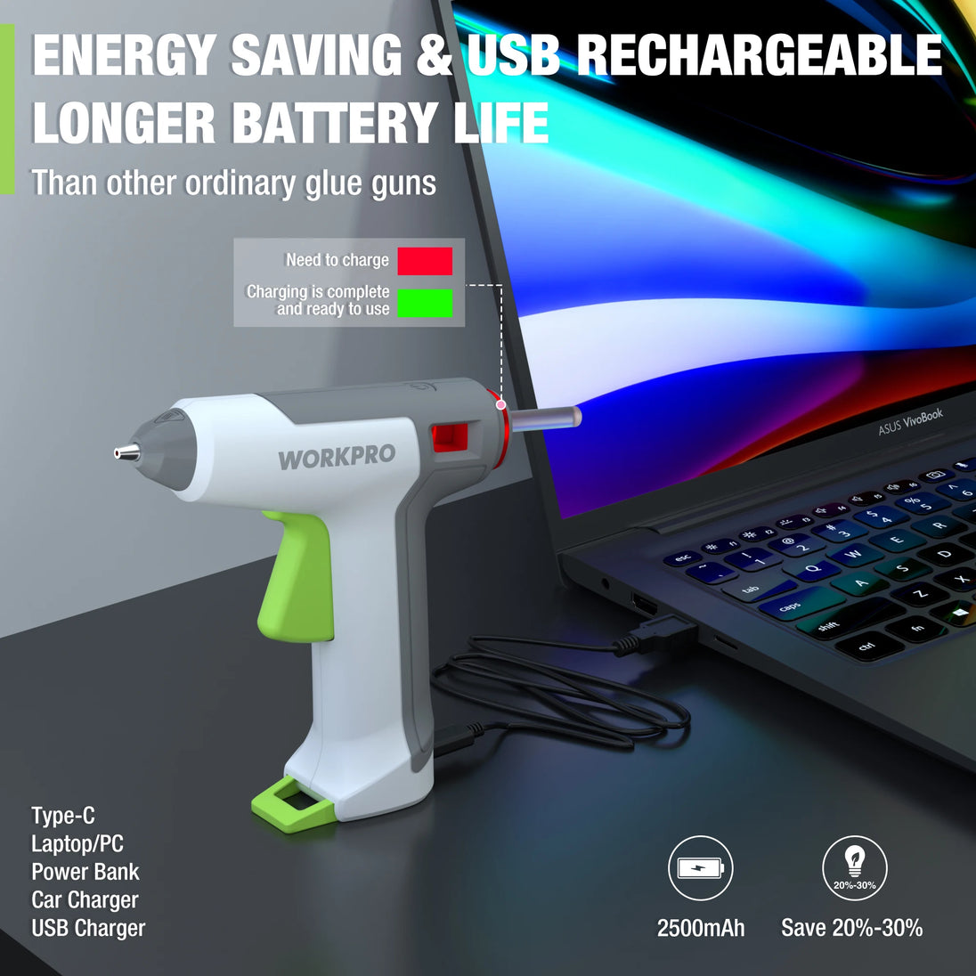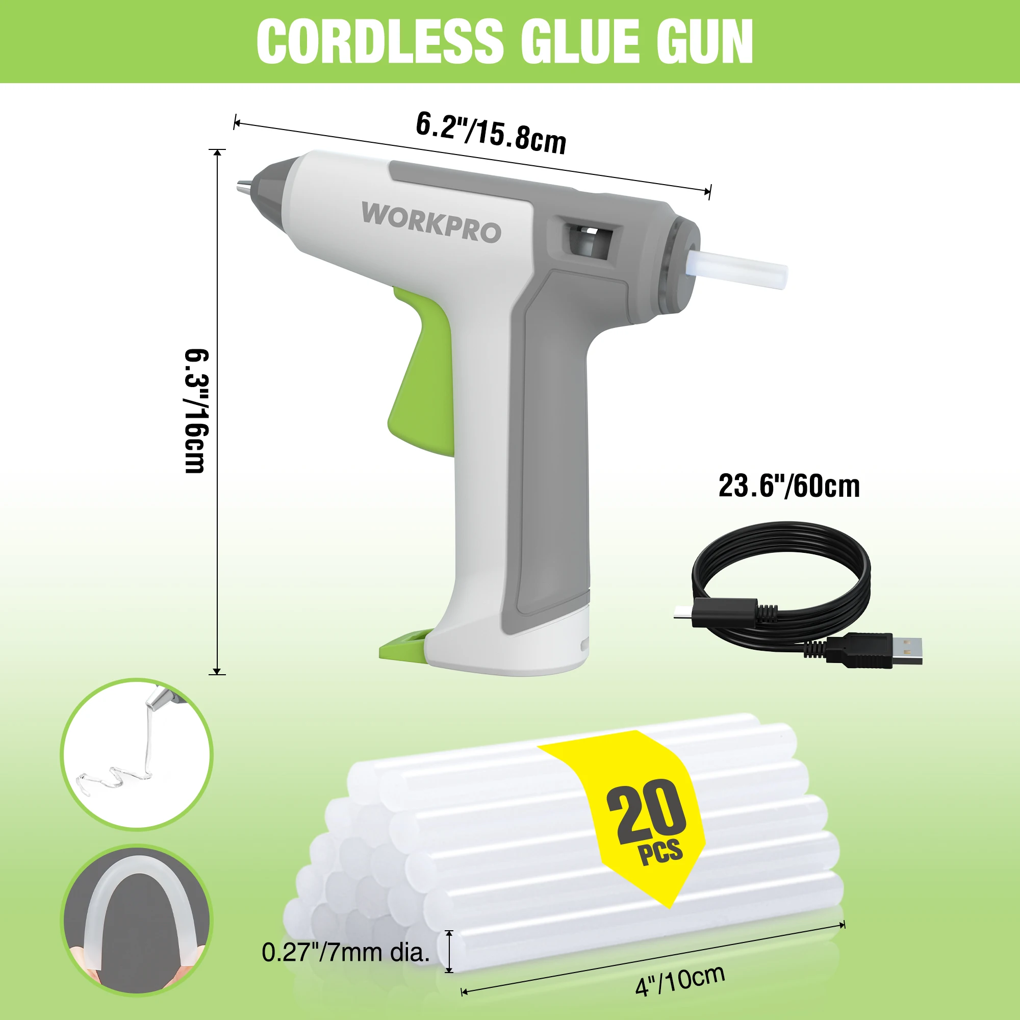 WORKPRO 3.6V Cordless Hot Glue Gun Household Mini Guns Electric Heat Temperature Tool With 20pcs Glue Sticks DIY Repair Tool