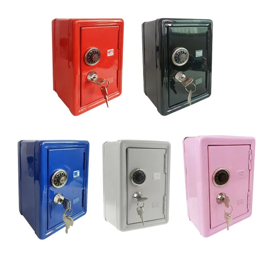For Creative Mini Metal Coin Bank Locker with Keys Kids Money Saving Jar Children Deposit Security Safe Box for Case Home