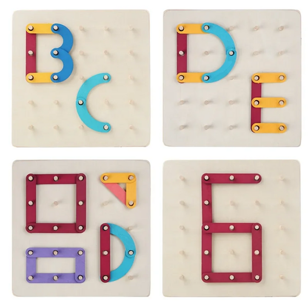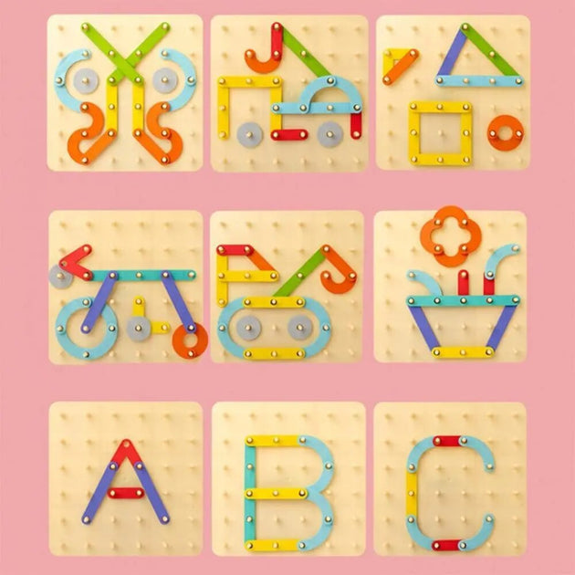 Montessori Baby Creative Toy Graphics Rubber Tie Nail Boards with Cards Childhood Education Preschool Kids