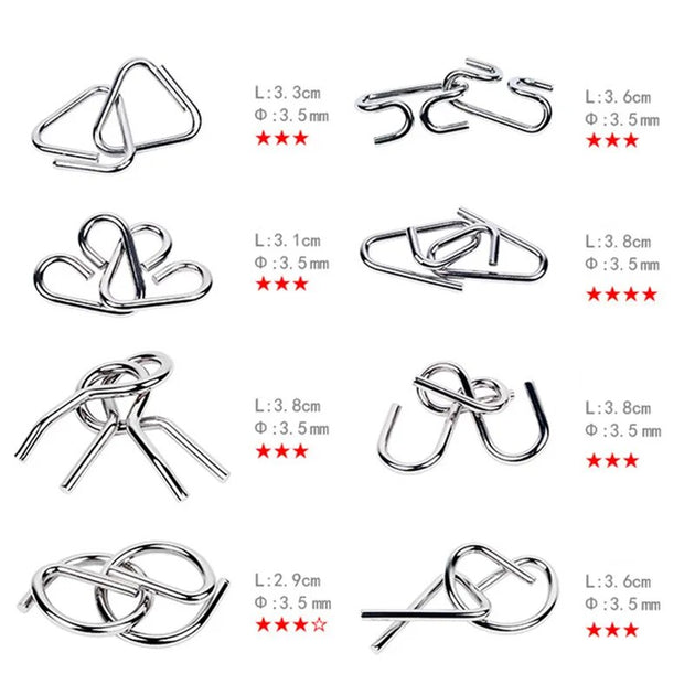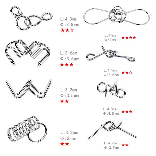 8pcs Children Puzzle Toy Intelligence Buckle Metal Brain Training Parent-child Interactive Games Unravel loop Release TMZ