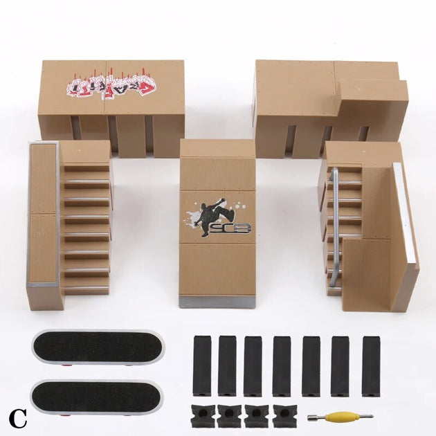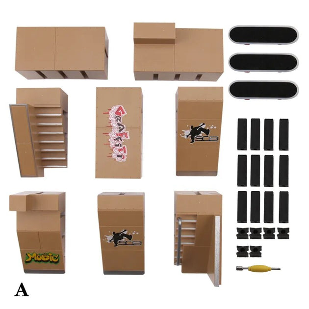 Finger Skateboard Skatepark DIY Mini Park Ramp for Tech Practice Deck Platform Stunt Finger Skateboard Ramp Set with BMX Bike