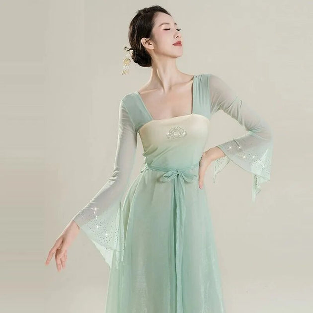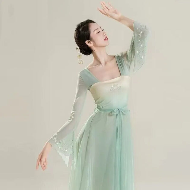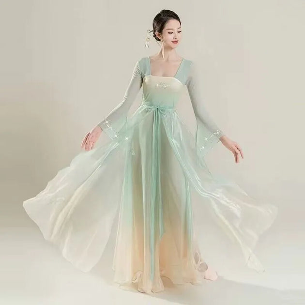 Chinese style folk dance classical dancer performance costumes elegant cardigan practice clothes body rhyme long outer gauze