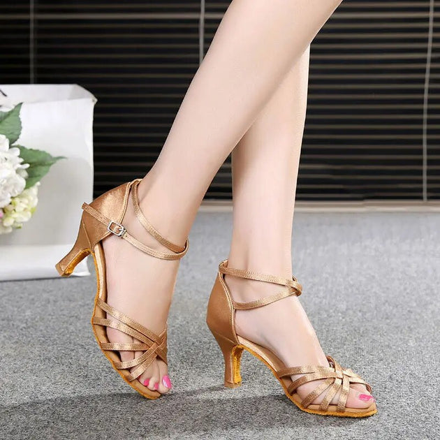 Women Latin Dance Shoes Ladies Ballroom Tango Soft Sole Jazz Shoes Girls Salsa Shoes High Heels Training Practice Party Sandals