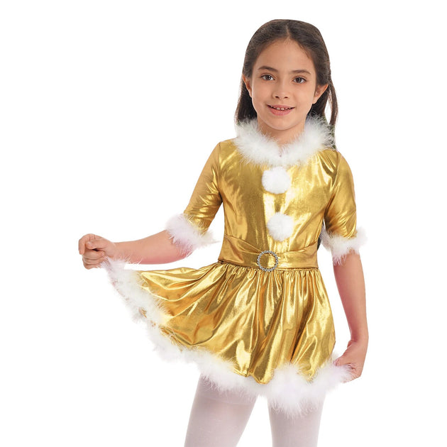 Kids Girls Christmas Dance Costume Metallic Jazz Tap Modern Stage Performance New Year Dancewear Figure Ice Skating Tutu Dress