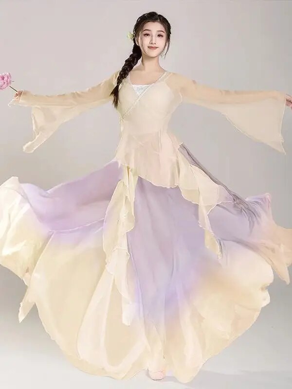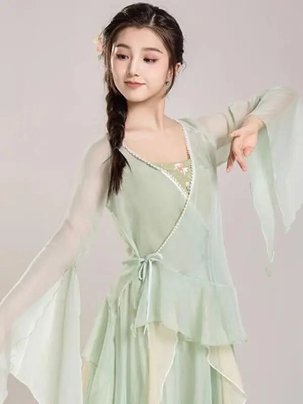 Classical Dance Practice clothes Chinese Dance Suit Body Rhyme Gauze Dress Long Sleeved Performance Costume